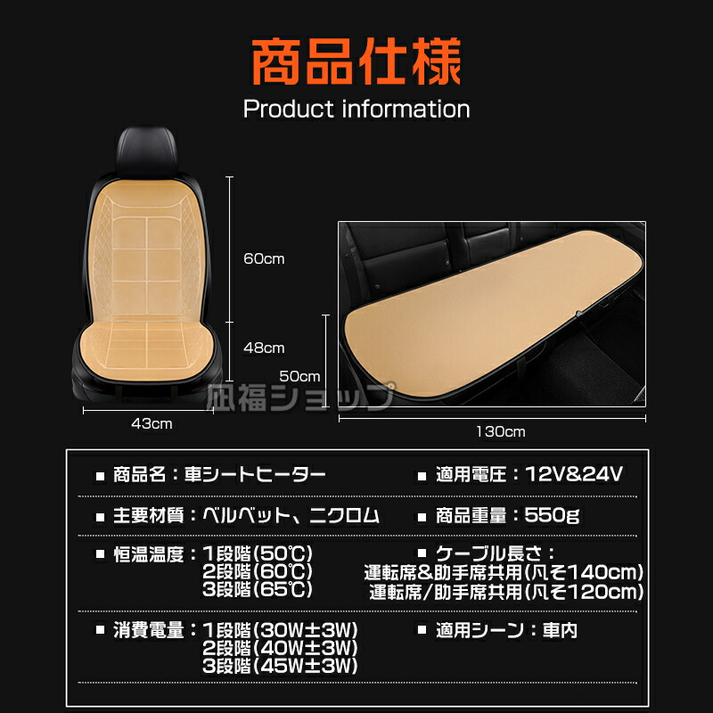 シートヒーター 後付け 12V兼用 車 ブラック【運転席&助手席】 ベージュ【運転席&助手席】 ブラウン【運転席&助手席】