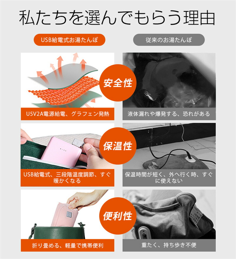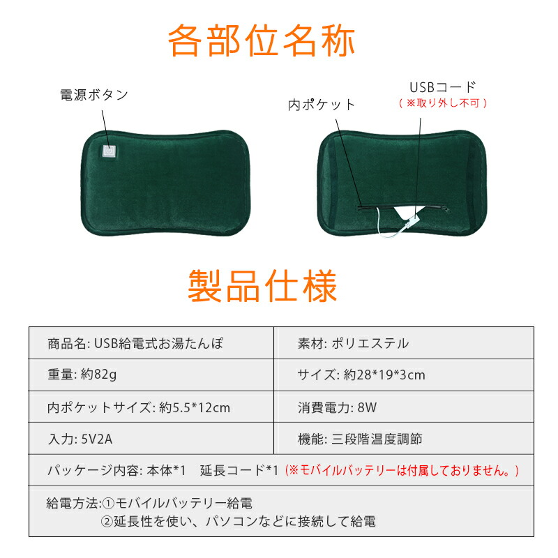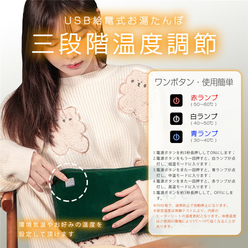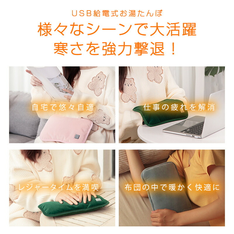 湯たんぽ 充電式 お湯の入れ替え不要 グリーン グレー ピンク