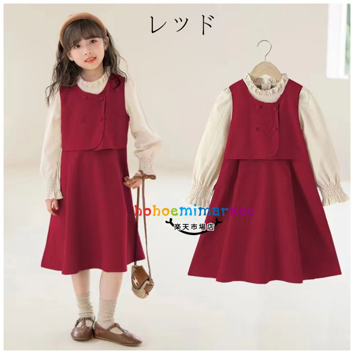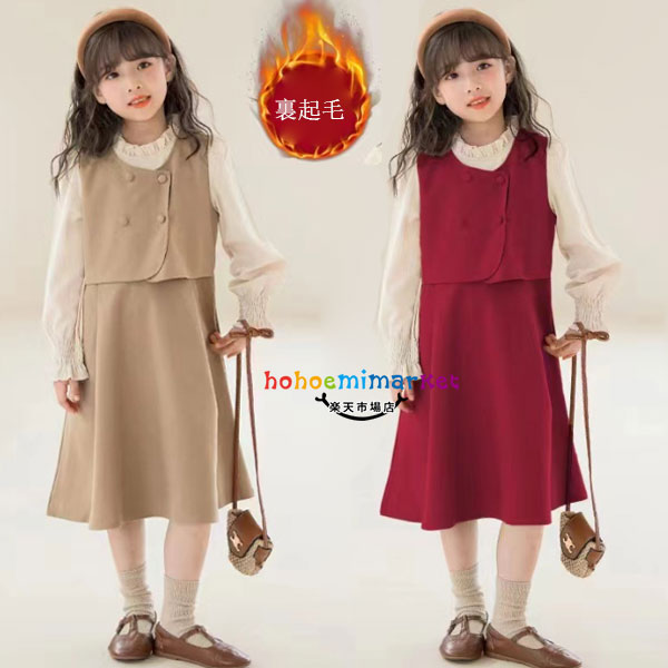 韓国子供服 裏起毛 ワンピース 女の子 キッズ ワンピース 豊富な品揃え ページュ レッド 110 120 130 140 150 160 170