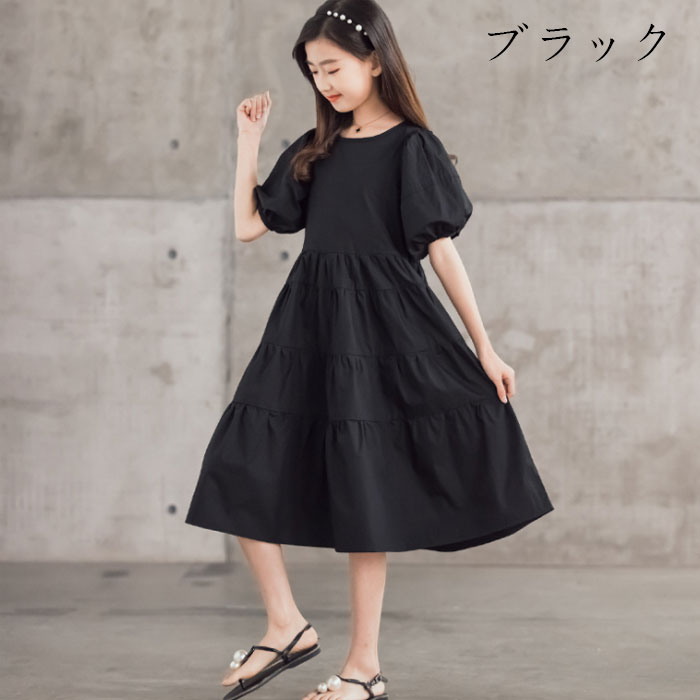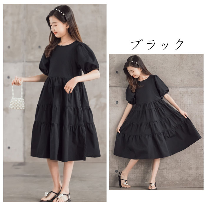 韓国子供服 夏 女の子 ワンピース ブ キッズ ベビー マタニティ 豊富 ブラック ホワイト 120 130 140 150 160 165