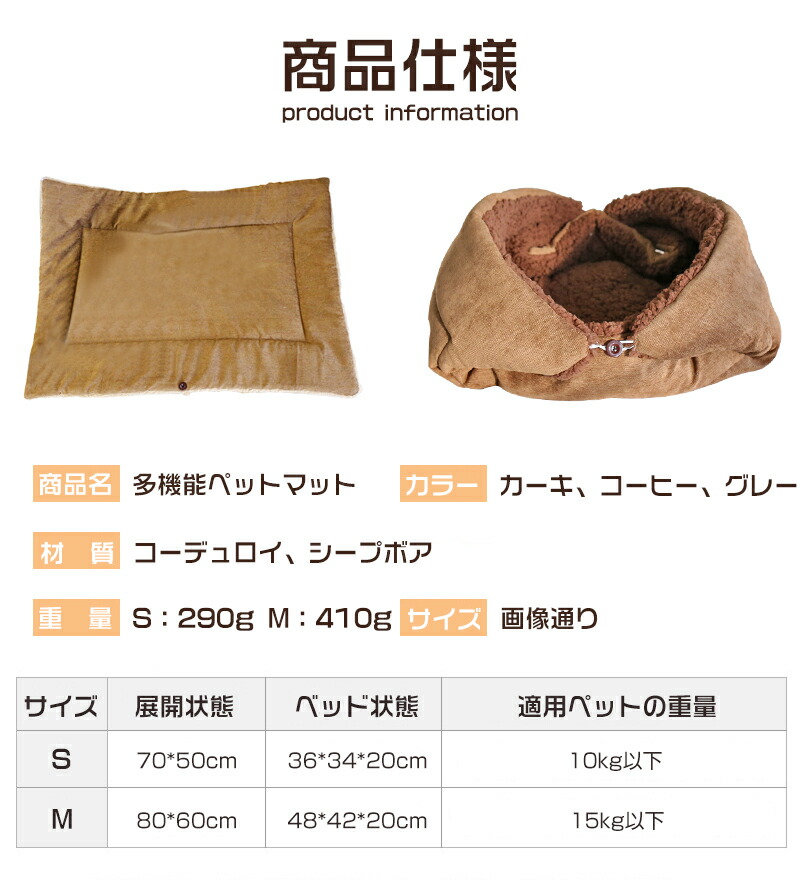 ペットマット 犬 猫 ペット用ホットカ ペット ペットグッズ 通販 カーキ コーヒー グレー S M