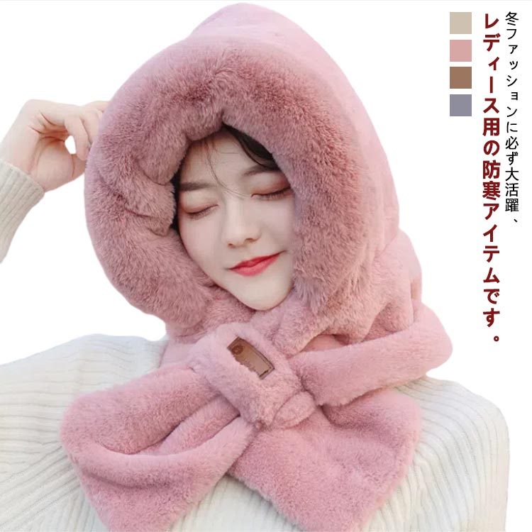 秋冬 帽子 フード付きマフラー レディ バッグ 小物 ブランド雑貨 超目玉商品 ベージュ ピンク ダークベージュ グレー