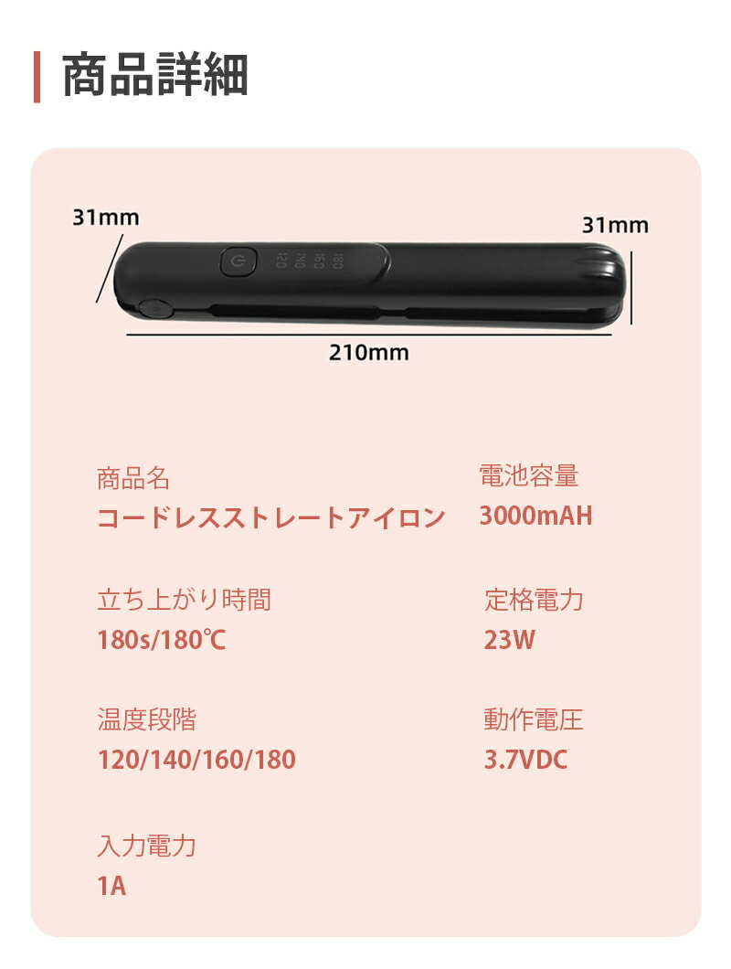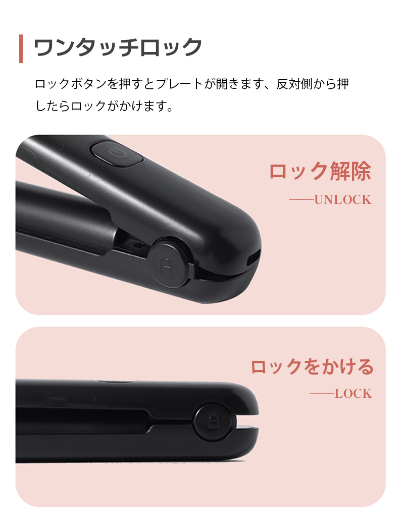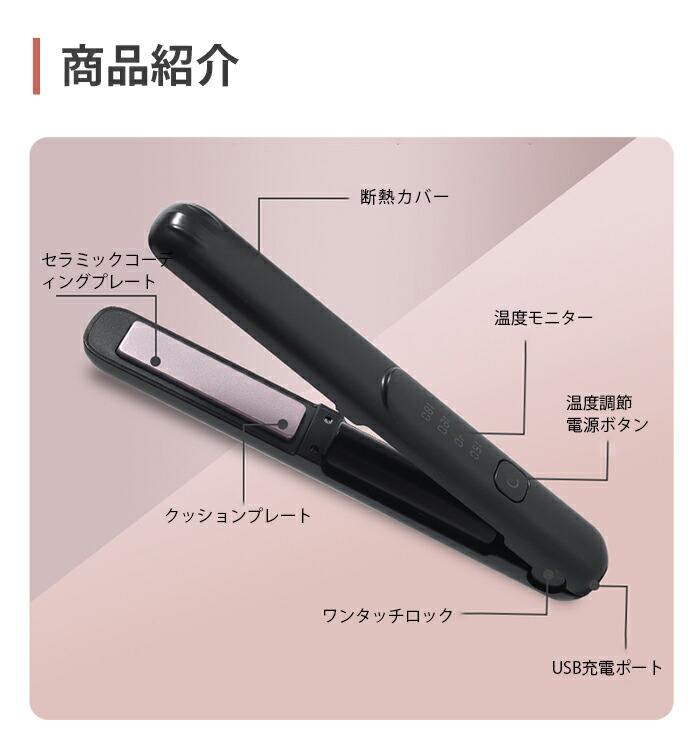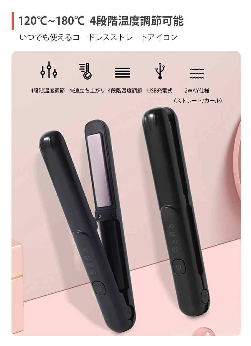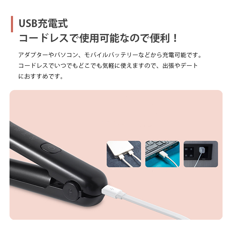 4段階調節 ストレートアイロン USB ホワイト ブラック ピンク