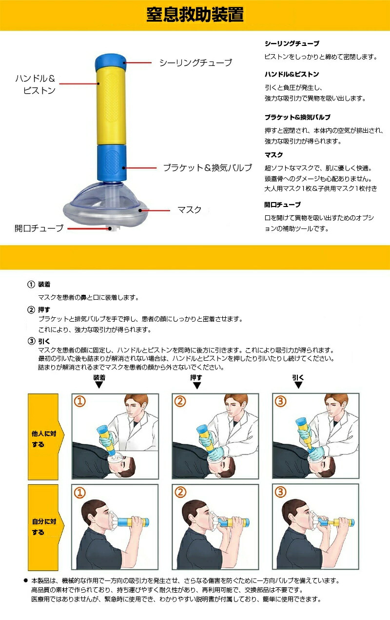 窒息救助装置ホームキット 子供と大人用 イエロー ホワイト
