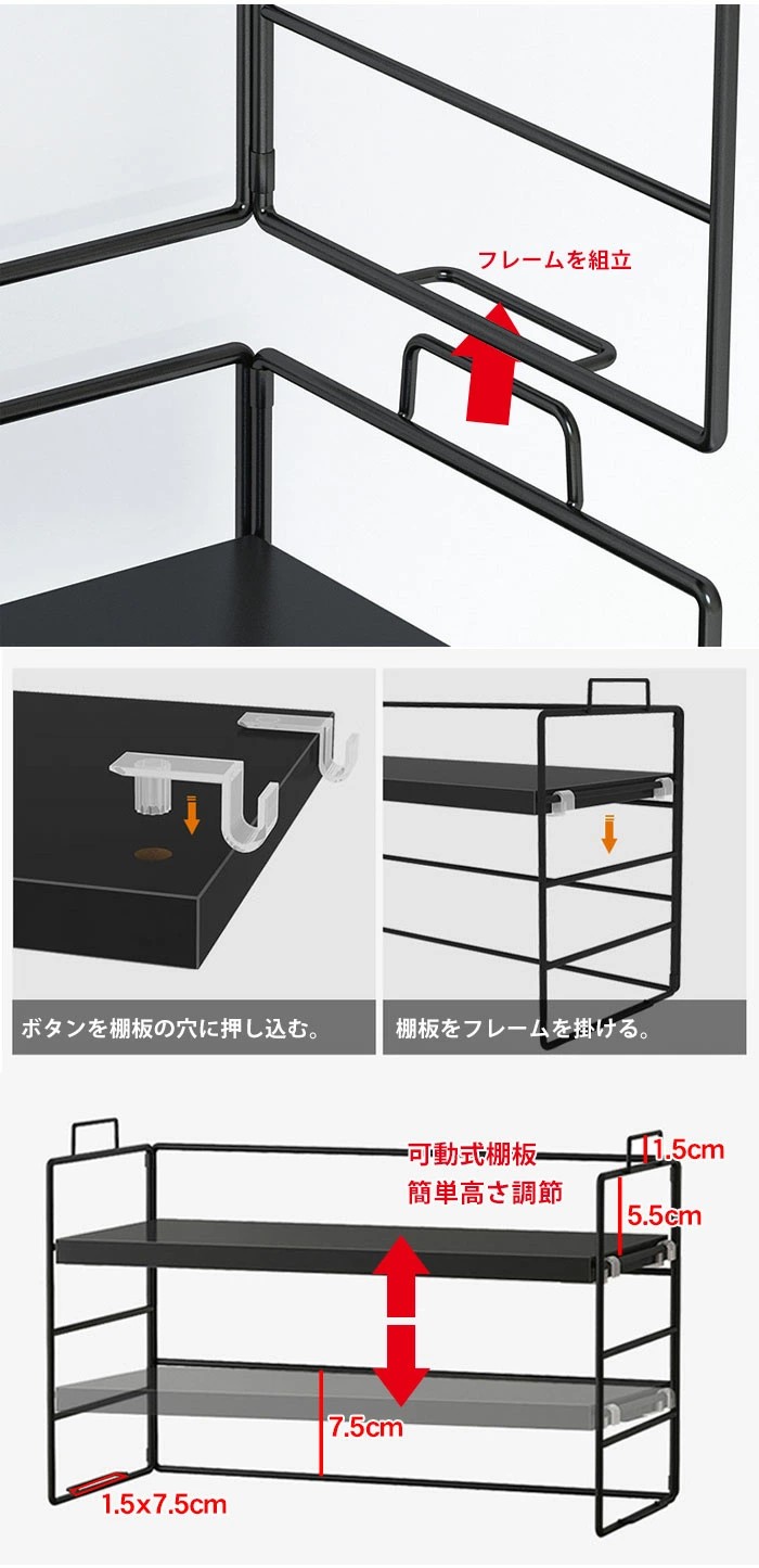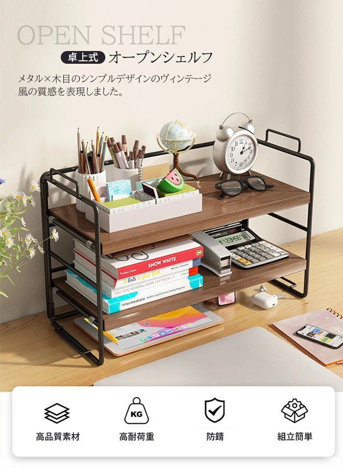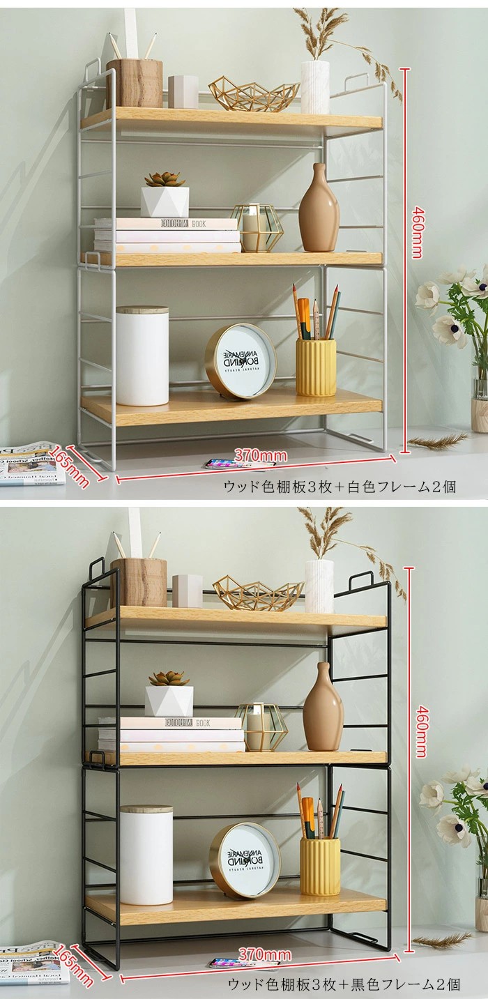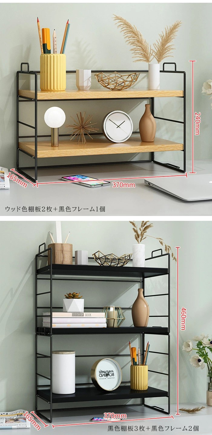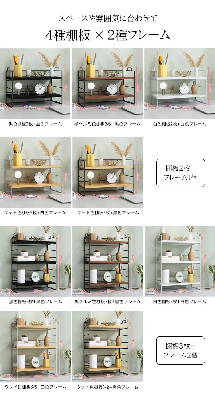 ラック 棚 ミニラック 卓上 おしゃれ 黒クルミ色棚板+黒色フレーム ウッド色棚板+白色フレーム ウッド色棚板+黒色フレーム 白色棚板+白色フレーム 黒色棚板+黒色フレーム 棚板2枚 棚板3枚