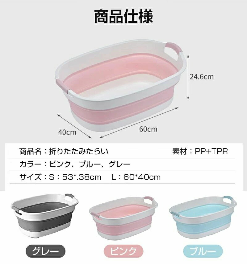 ベビーバス 折りたたみ 大きめ シンク ピンク ブルー グレー S L