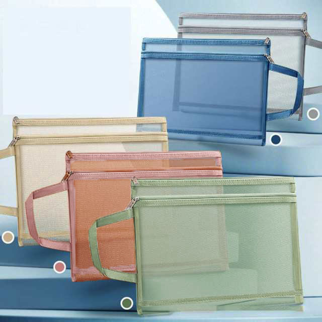 A4 メッシュケース 大容量 ファスナ 文房具 事務用品 その他 新作 ブルー グリーン ピンク グレー ベージュ