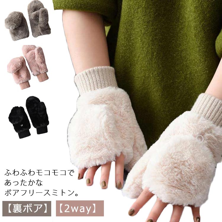 レディース ボアフリース アウトドア 手袋 アームウォーマー レディース手袋 通販 ホワイト ブラック ピンク ベージュ グレー