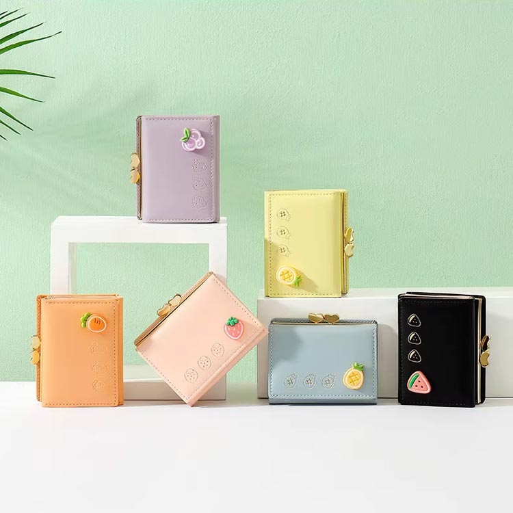 小さい財布 フルーツ柄 ミニ財布 コン 財布 ケース レディース財布 超目玉商品 ピンク オレンジ パープル ブルー イエロー ブラック