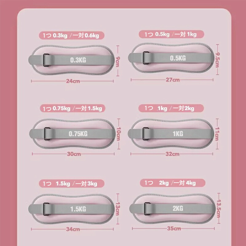 筋トレウェイト 2個セット 手首 足首 0.3kg/2個入り0.6kg 0.5kg/2個入り1kg 0.75kg/2個入り1.5kg 0.1kg/2個入り2kg 1.5kg/2個入り3kg 2kg/2個入り4kg ピンク ブルー ブラック