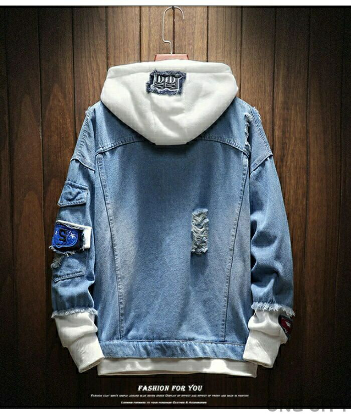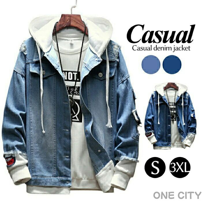 S-3XL デニムジャケットメンズ 春 秋アウターダメージ加工 ウィンテージ感 オーバーサイズ メンズ gジャンデニムパーカーメンズ 重ね風 フード付き アウター ストリート コート 原 ヒップホップ