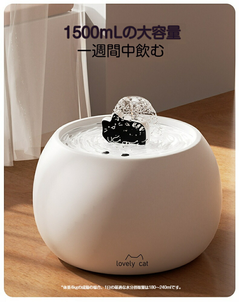 猫 自動給水器 給水器 給水器用ウォー ホワイト ブラック イエロー グリーン 1L 1.5L