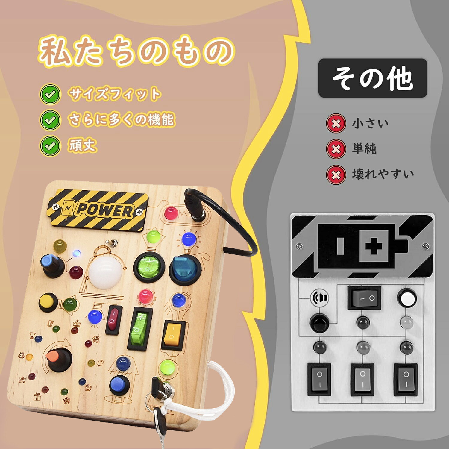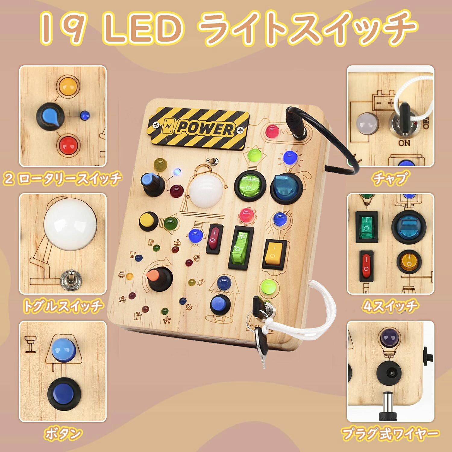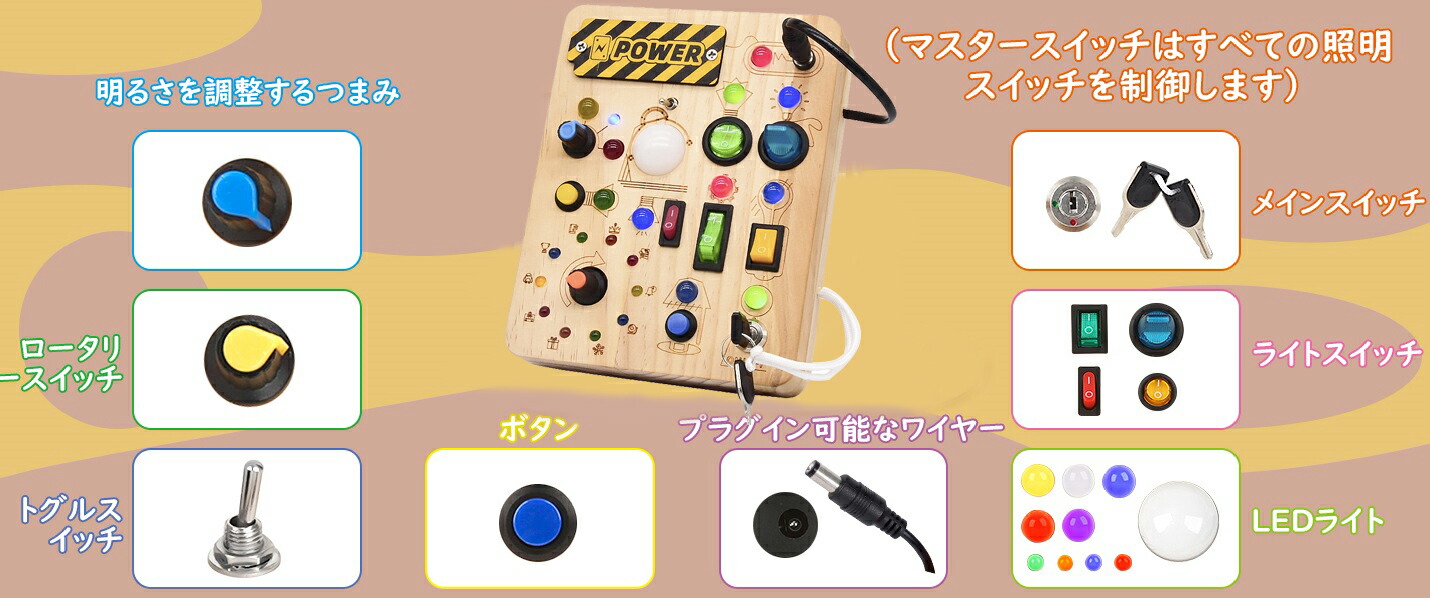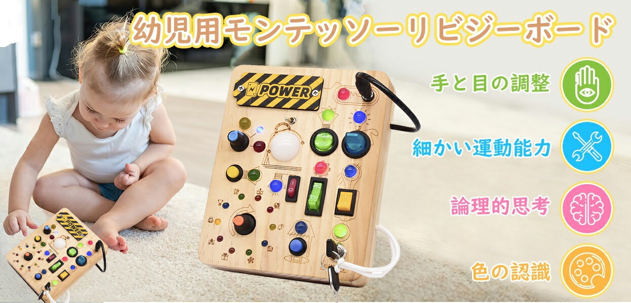 モンテッソーリ ビジーボード おもちゃ 子ども 知育おもちゃ 知育玩具 スイッチ 木のおもちゃ 学習 モンテッソーリ教具 LEDイルミネーション お歳暮クリスマス 誕生日プレゼ 指先訓練