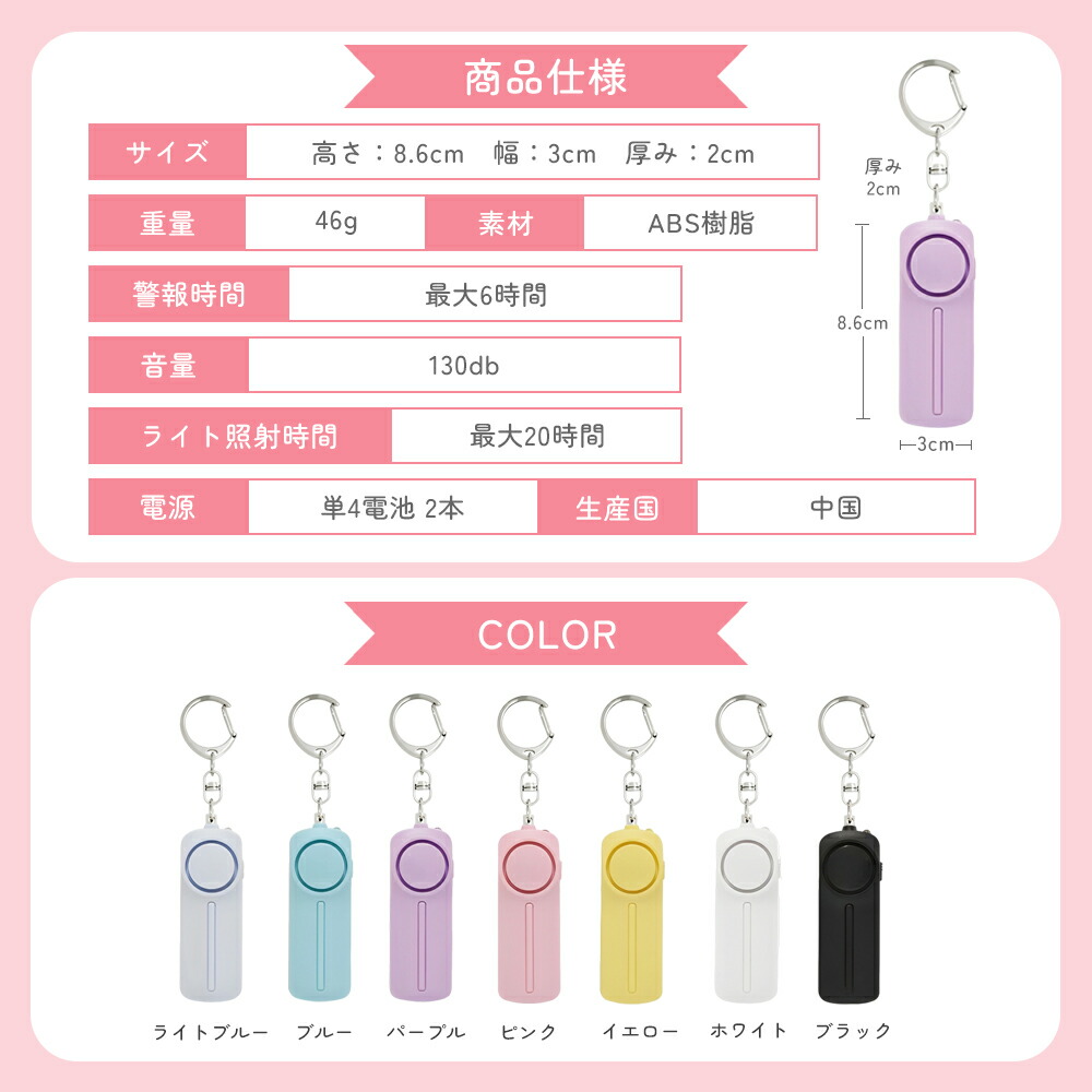 長時間連続使用 防犯ブザー 子ども ラ キッズ ベビー マタニティ 特集 ブラック ホワイト ライトブルー ブルー ピンク パープル イエロー