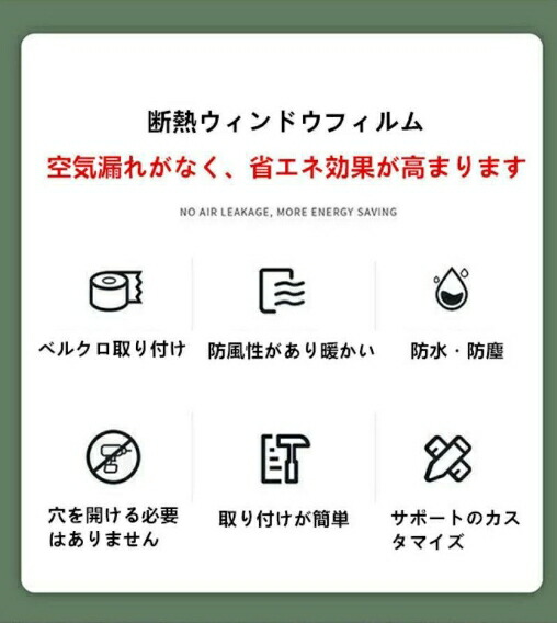 環境に優しい素材:ウィンドウ断熱キットは環境に優しいEVAバブルフィルムでできており、周囲のエッジとダブルステッチが施されており、シールがより安定し、フィッティングが向上し、効率的な断熱、防水、断熱、防風、耐寒、防塵、省エネ、結露防止などの特性があり、再利用可能です。