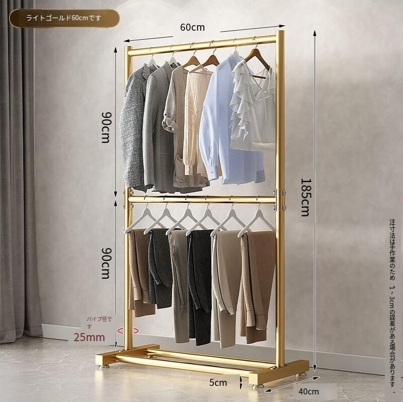 ハンガーラック スリム 頑丈 パイプハ ブラック ホワイト ゴールド 60cm二段 80cm二段 100cm二段 120cm二段 150cm二段