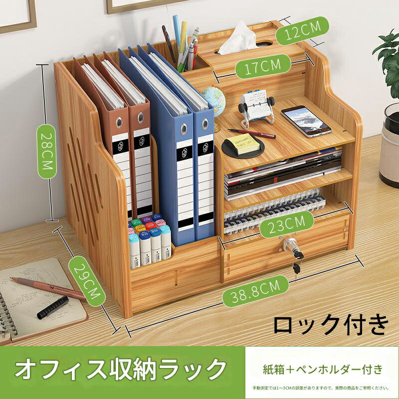 小物収納 木製 38.8*29*28c ホワイト チェリーウッド ブライトブラック ロック付き ロックなし