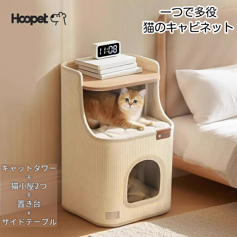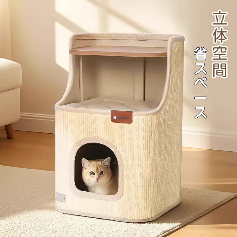 ペットハウス 冬用猫用ハウス キャビネット型 ハウス 猫爪とぎ 爪磨き 多頭飼い 2段ベッド 省スペース ねこ 用品 ベッド つめとぎ 猫の爪とぎ 爪研ぎ 室内 ネコハウス 軽量 猫ハウ 屋内