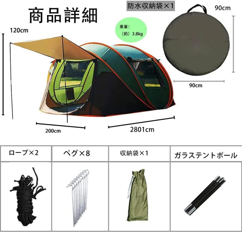 テント ポップアップテント 1秒設営 アーミーグリーン カーキ