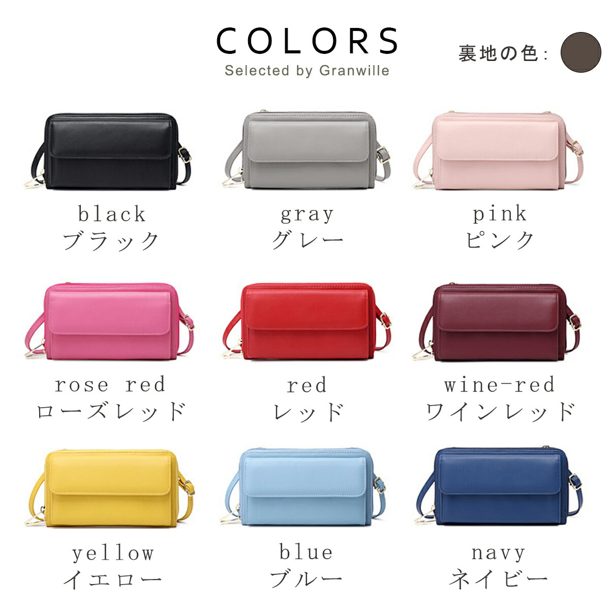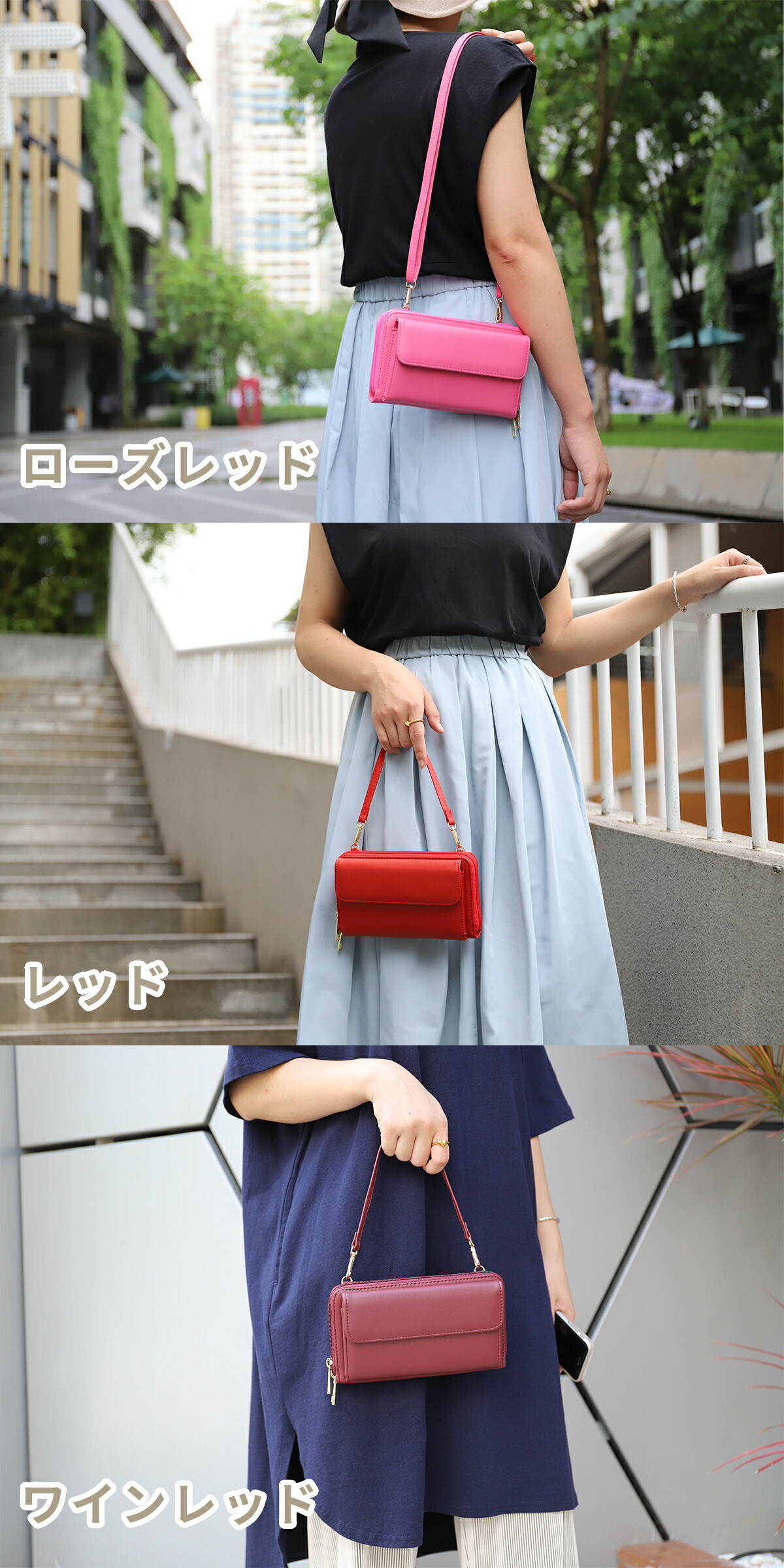 スマホポーチ レディース ショルダーバ バッグ 小物 ブランド雑貨 続々入荷中 ブラック グレー ピンク ローズレッド レッド ワインレッド ブルー ネイビー