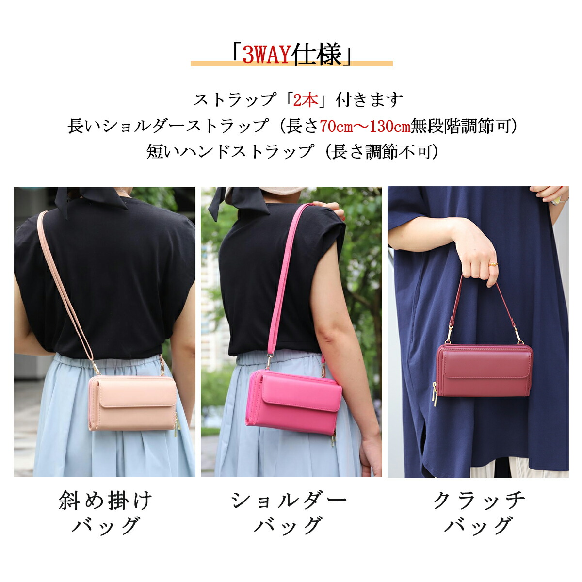 スマホポーチ レディース ショルダーバッグ 3way スキミング防止 入れたまま操作 バッグ 斜め掛け 斜めがけバッグ スマホショルダー お財布 ショルダー かわいい ミニバッグ 肩掛けバ 通勤バッグ
