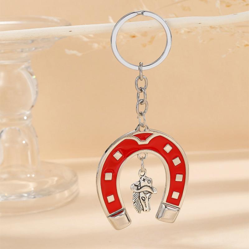 キーホルダー メンズ レディース ウエスタン 馬蹄 マグネット ペンダント 金属 アクセサリー レッド バッグ