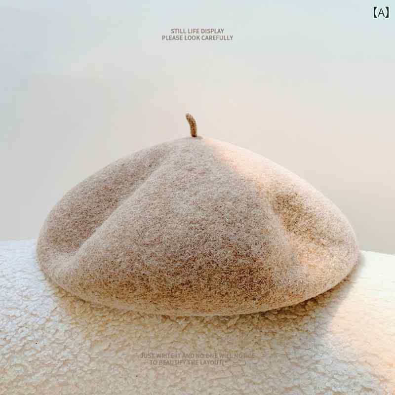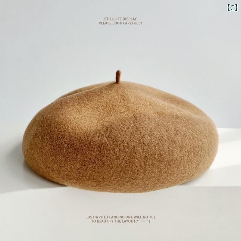 ベレー帽 レディース 帽子 ファッション おしゃれ かわいい ウール 秋冬 小さいサイズ カーキ 黒 キャメル レトロ