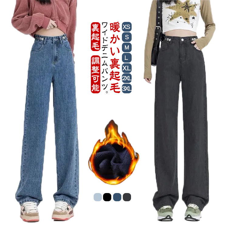デニムパンツ レディース ワイド 裏起 ボトムス パンツ 続々登場 裏起毛有1 裏起毛有2 裏起毛有3 裏起毛有4 XS S M L XL 2XL 3XL