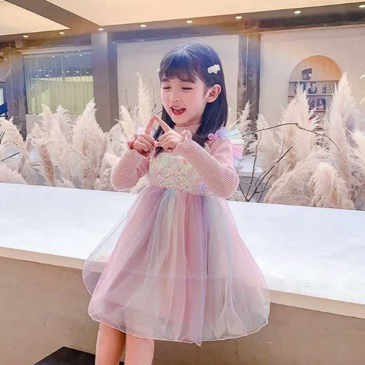 レインボーグラデーション 子供ドレス キッズ ワンピース 早い者勝ち 裏起毛無ブルー 裏起毛無ピンク 裏起毛付ブルー 裏起毛付ピンク 90 100 110 120 130 140