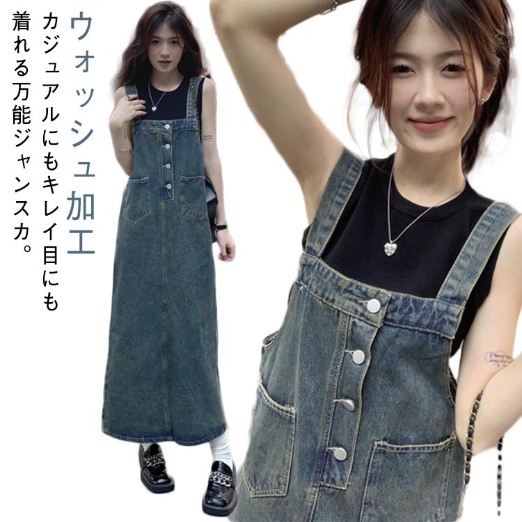 ヴィンテージ ジャンスカ ポケット付き オールインワン サロペット 新作 S M L XL