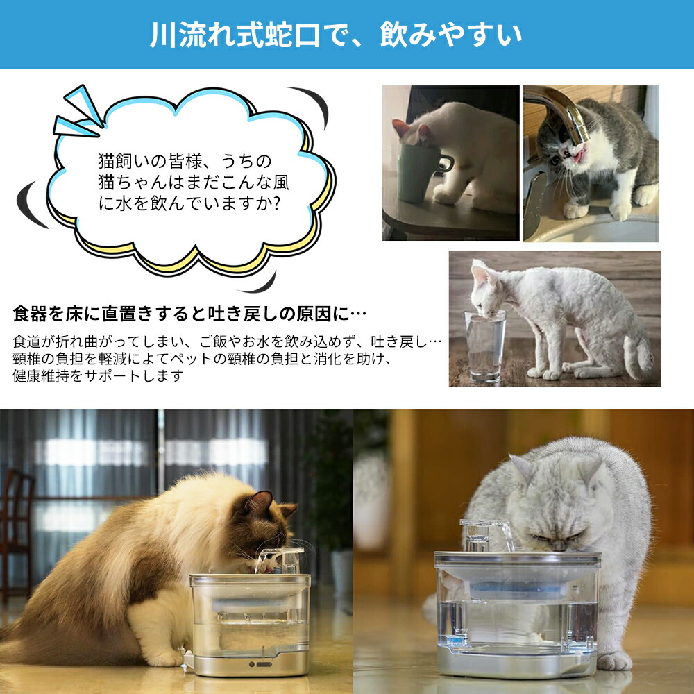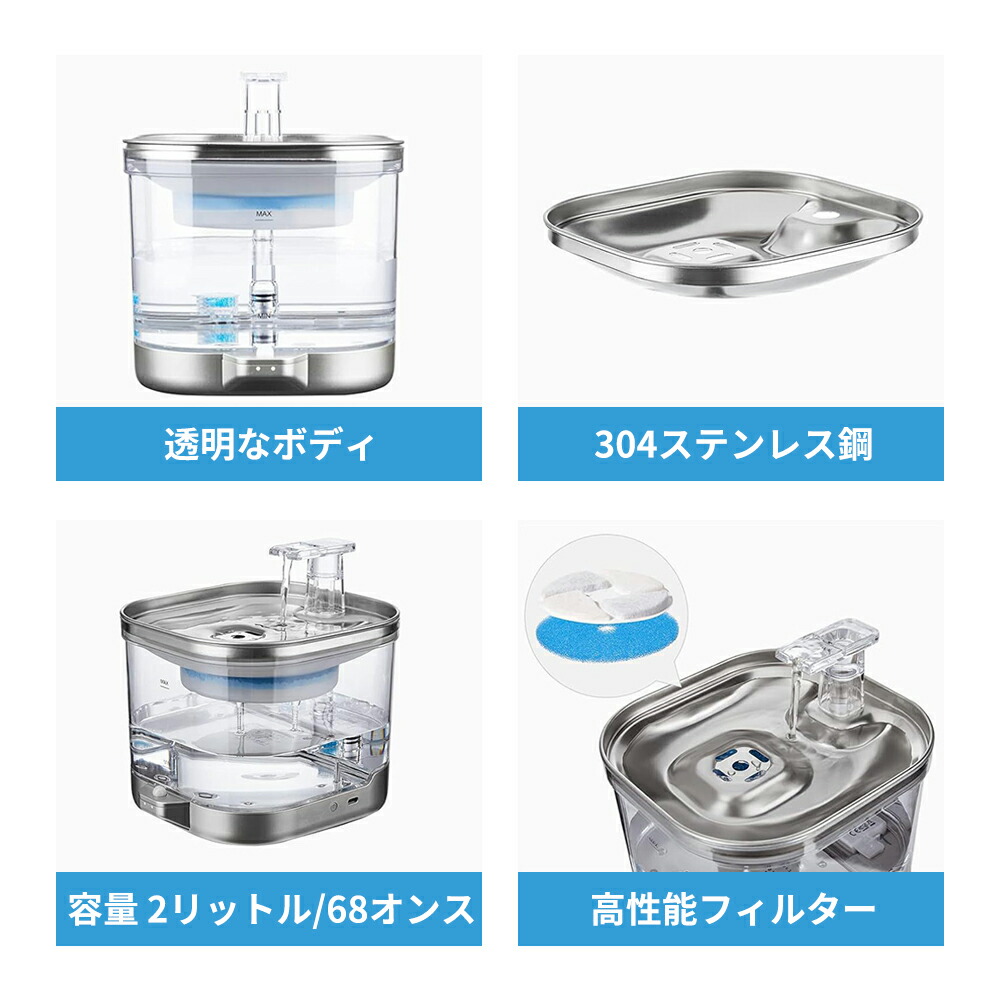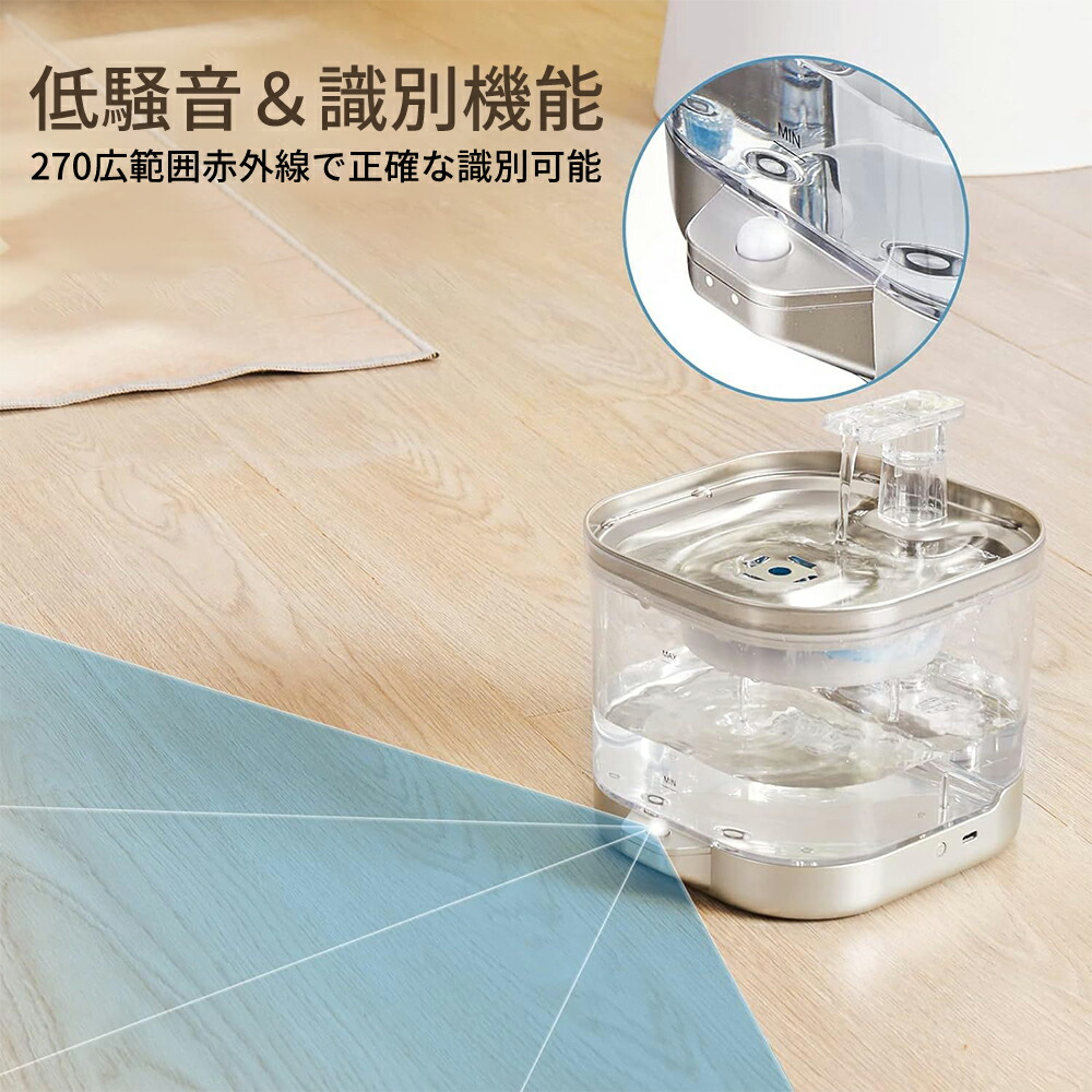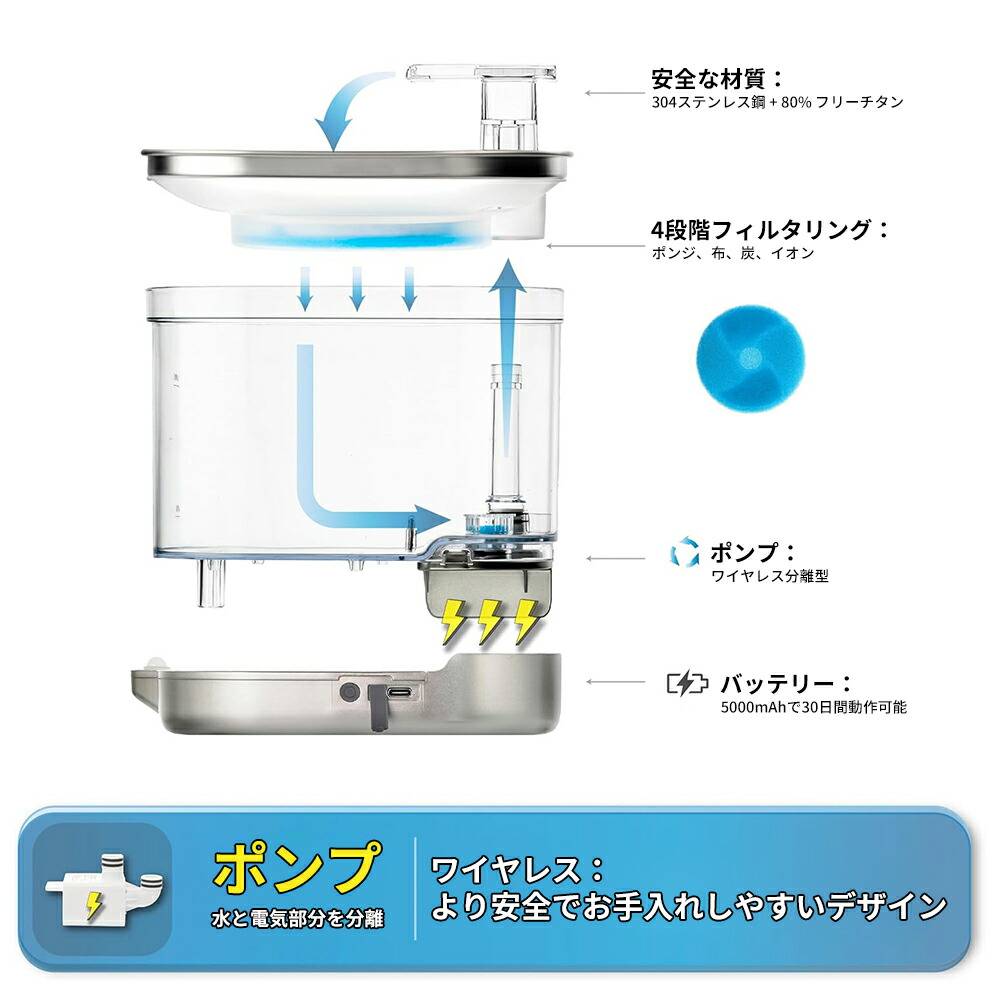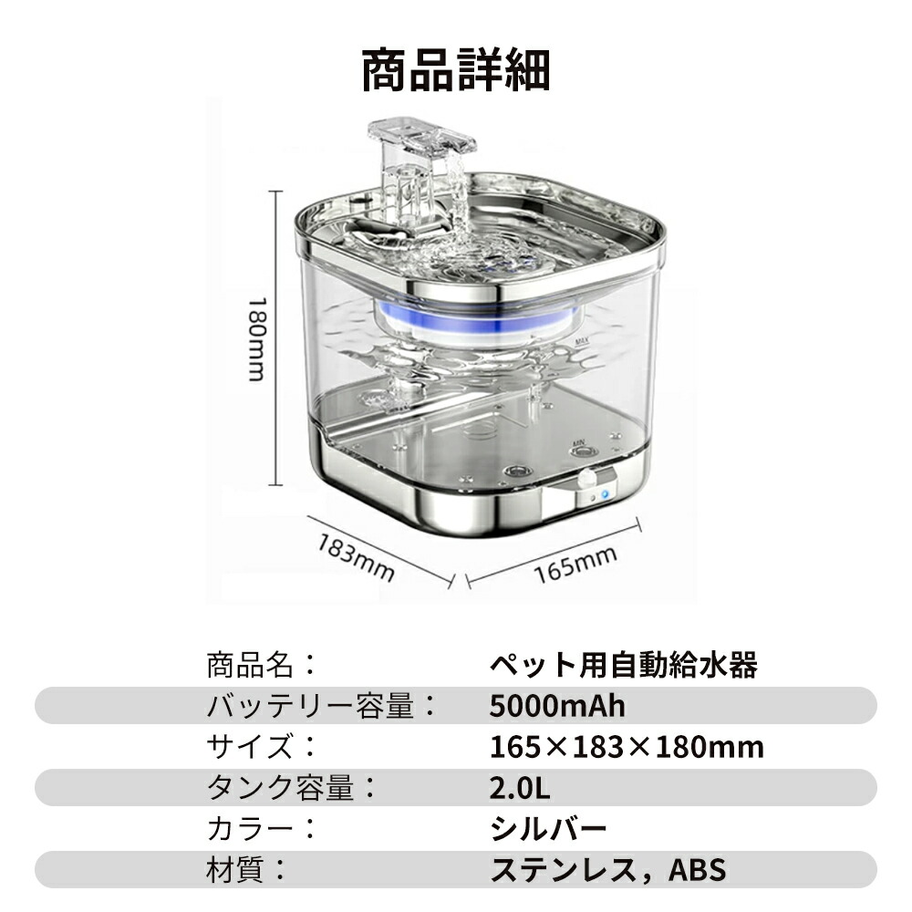 自動給水器 猫 犬 コードレス 水飲み器 ステンレス製 2L 洗いやすい 給水器 取付簡単 ペット 自動水やり器 超静音 大容量 20dB静音ペットキット ペット用 自動給 多頭飼いも対応