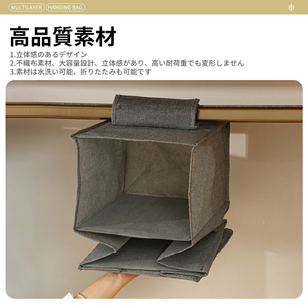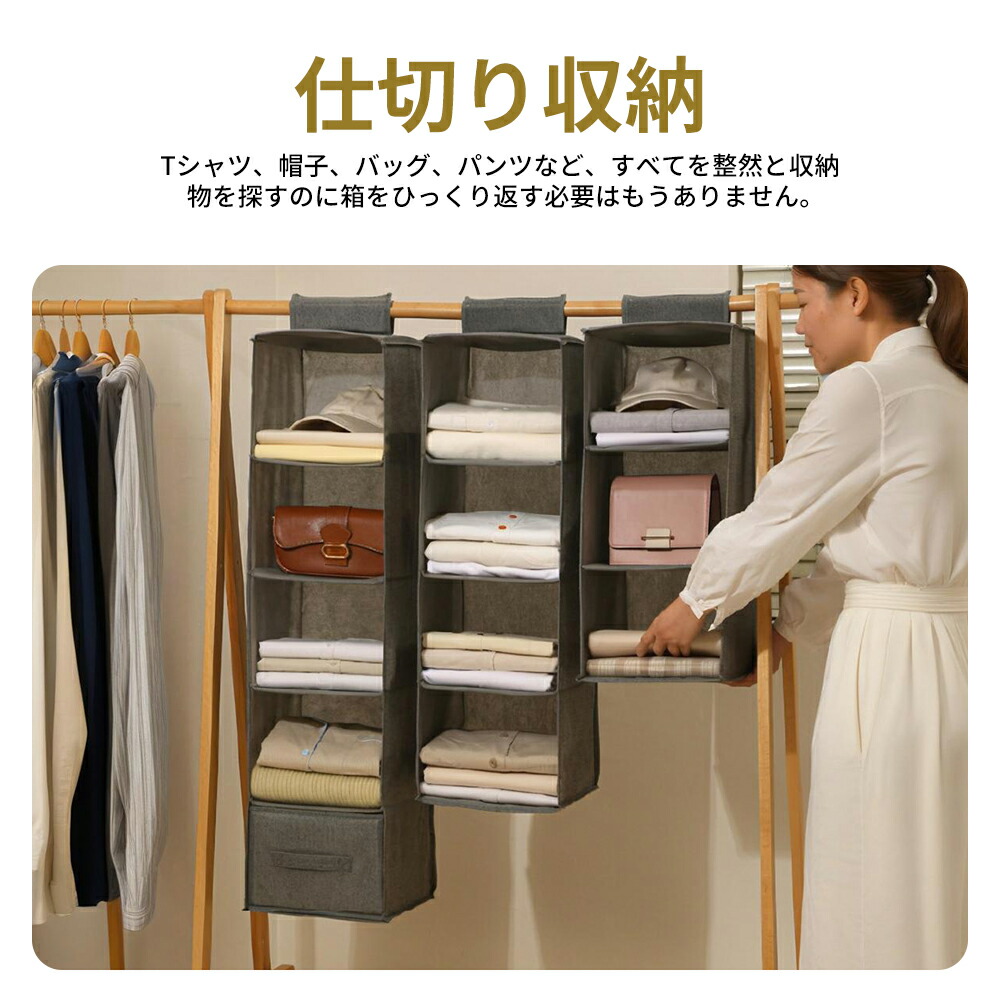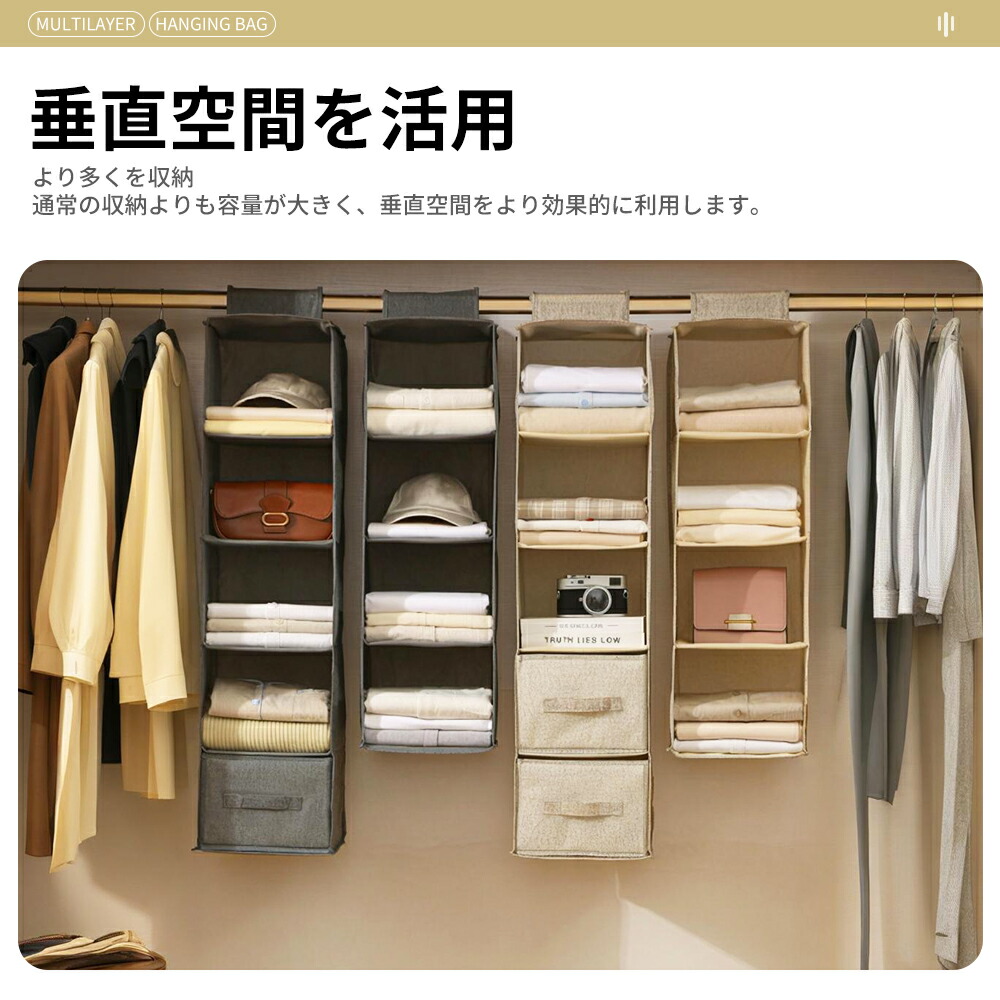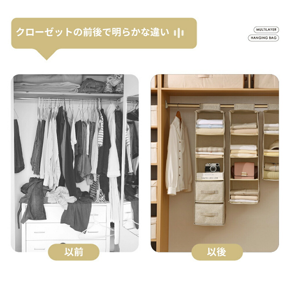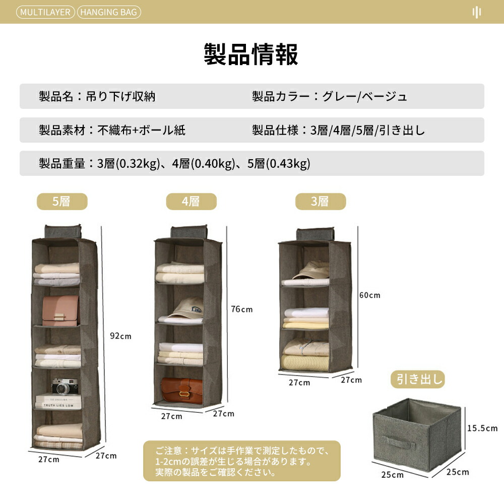 吊り下げ収納 クローゼット 吊り下げ ベージュ グレー 3段(引き出し無し) 4段(引き出し無し) 5段(引き出し無し)