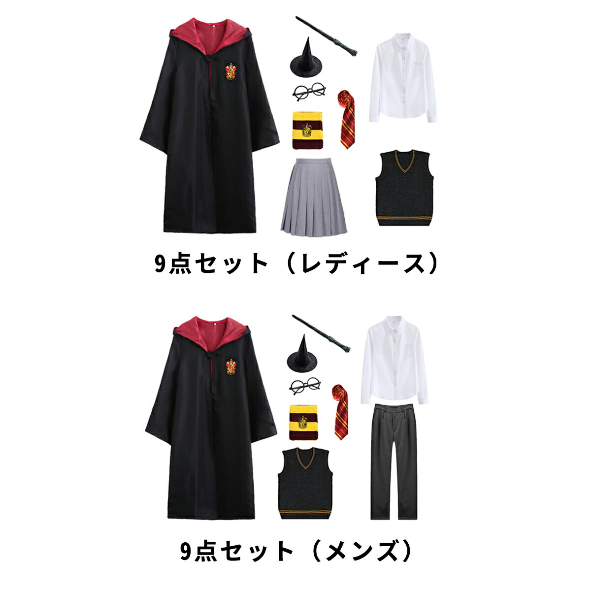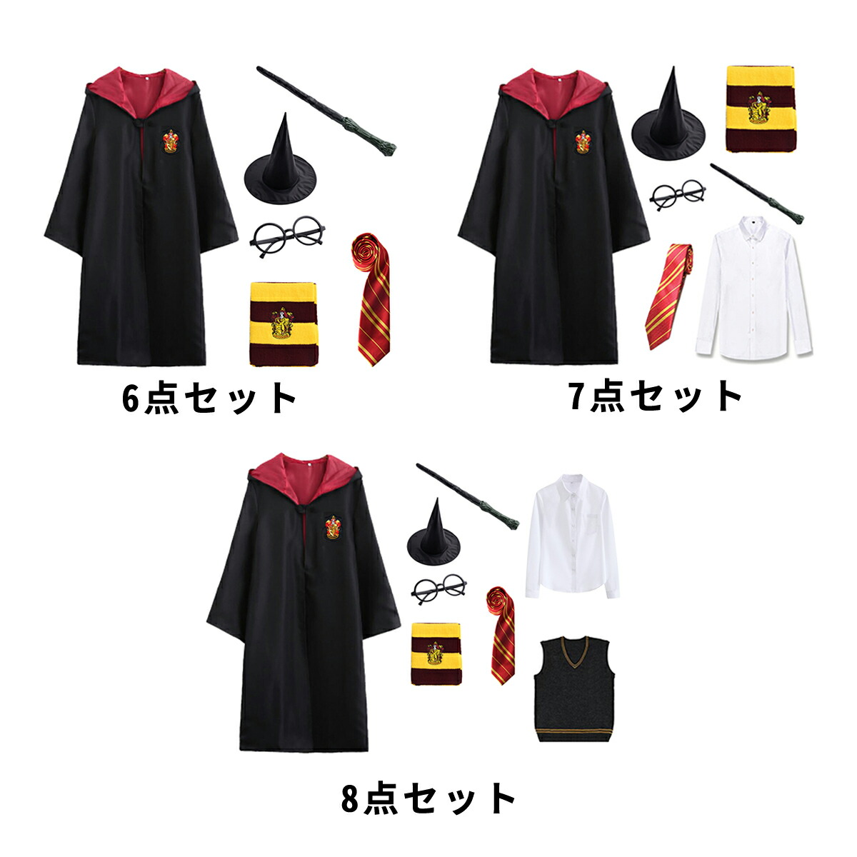 ハリーポッター コスプレ キッズ ロー コスプレ 変装 仮装 コスチューム一式 続々登場 レッド(グリフィンドール) グリーン(スリザリン) ブルー(レイブンクロー) イエロー(ハッフルパフ) マント1点だけ 2点セット 3点セット 5点セット 6点セット 7点セット 8点セット 9点セット(レディース) 9点セット(メンズ)