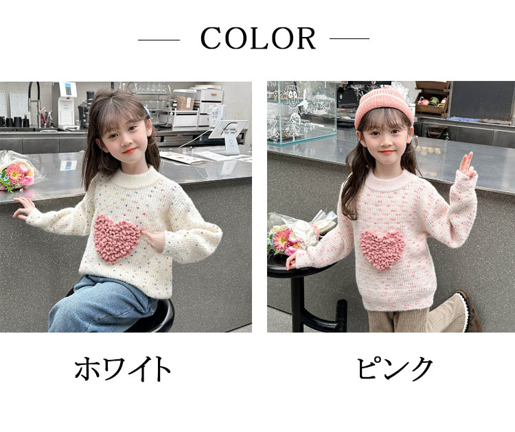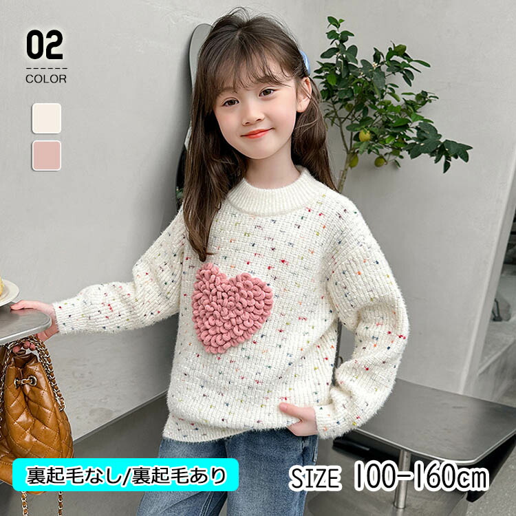 セーター キッズ 子供 女の子 トップ キッズ トップス セーター 新登場! ホワイト(裏起毛なし) ピンク(裏起毛なし) ホワイト(裏起毛あり) ピンク(裏起毛あり) 100cm 110cm 120cm 130cm 140cm 150cm 160cm