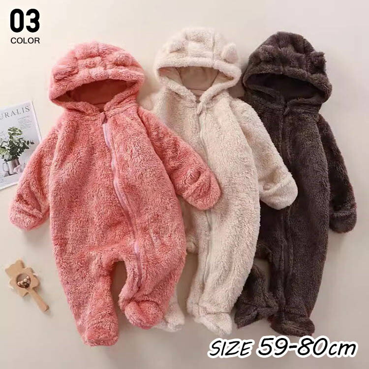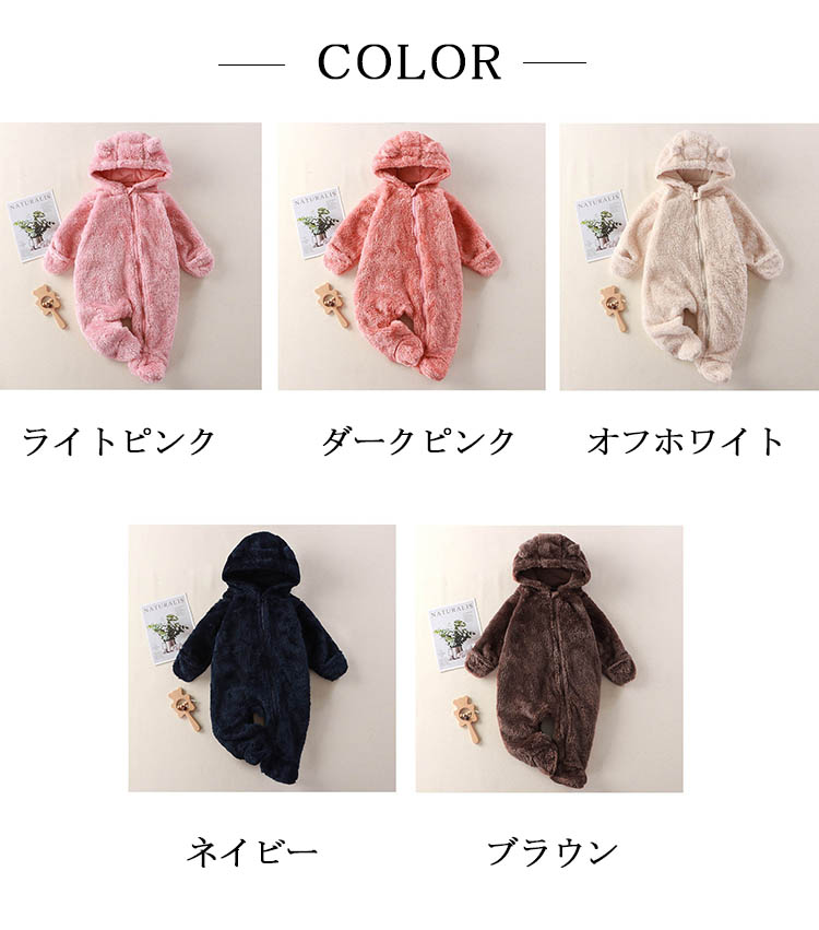 ロンパース 男の子 女の子 秋冬 長袖 ベビー ベビー服 ファッション カバーオール ロンパース 人気 ライトピンク ダークピンク オフホワイト ネイビー ブラウン 59cm 66cm 73cm 80cm