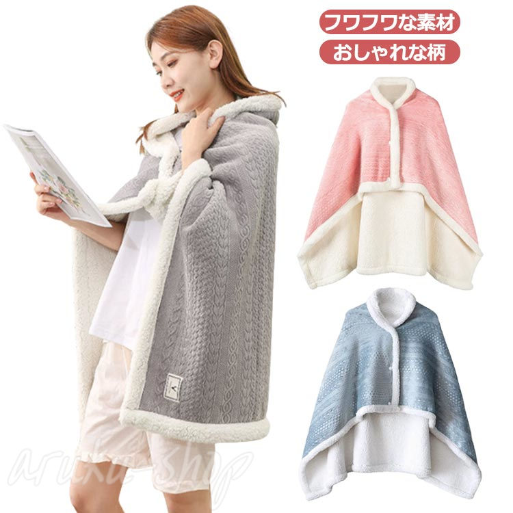 ボタン付き レディース ポンチョ ブラ 寝具 毛布 ブランケット 豊富 ブルー グレー ピンク