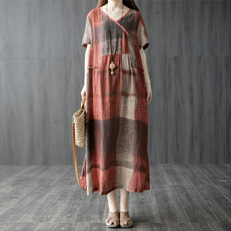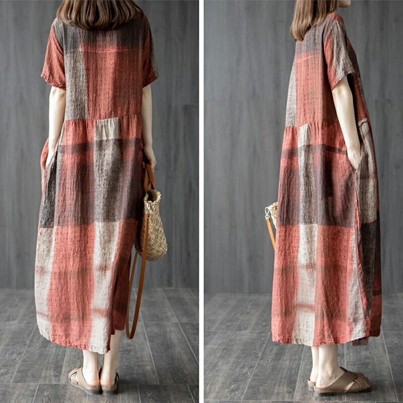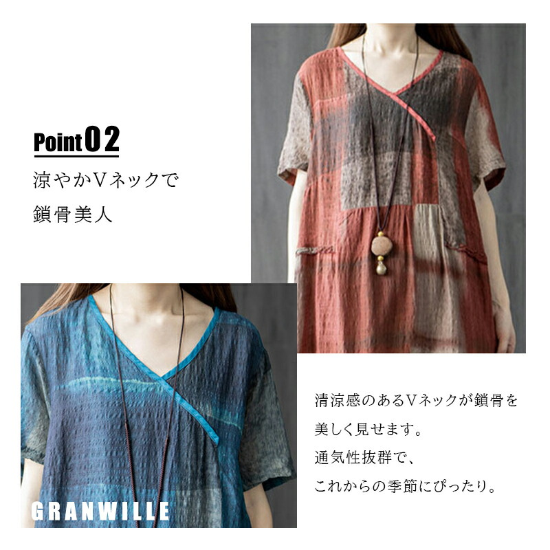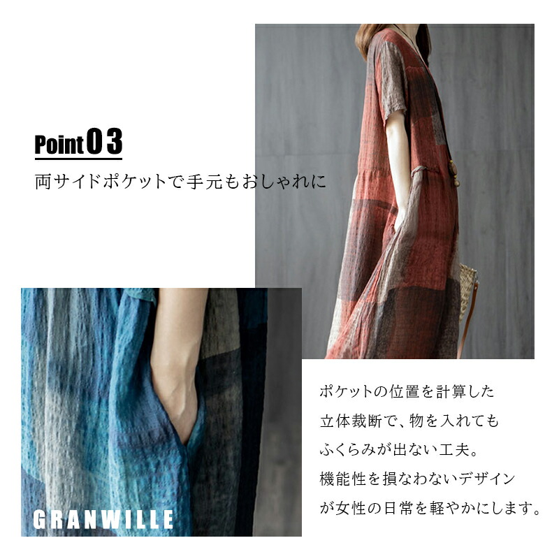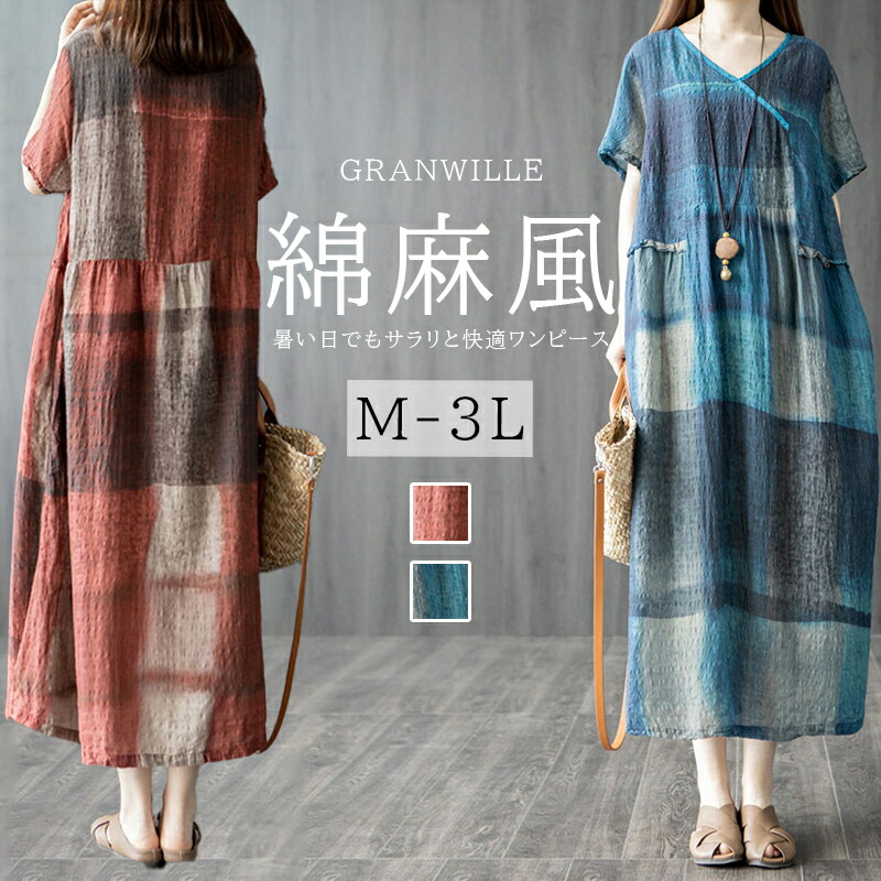 ワンピース 綿麻 レディース 秋 夏 ワンピース 新登場! ブルー レッド M L XL(LL) 2XL(3L)