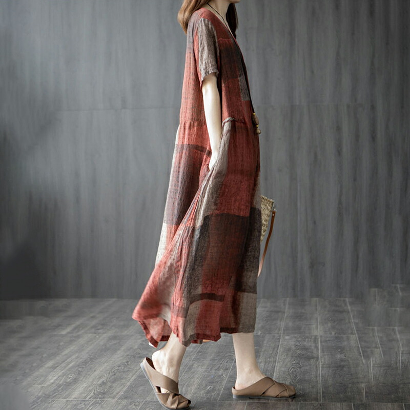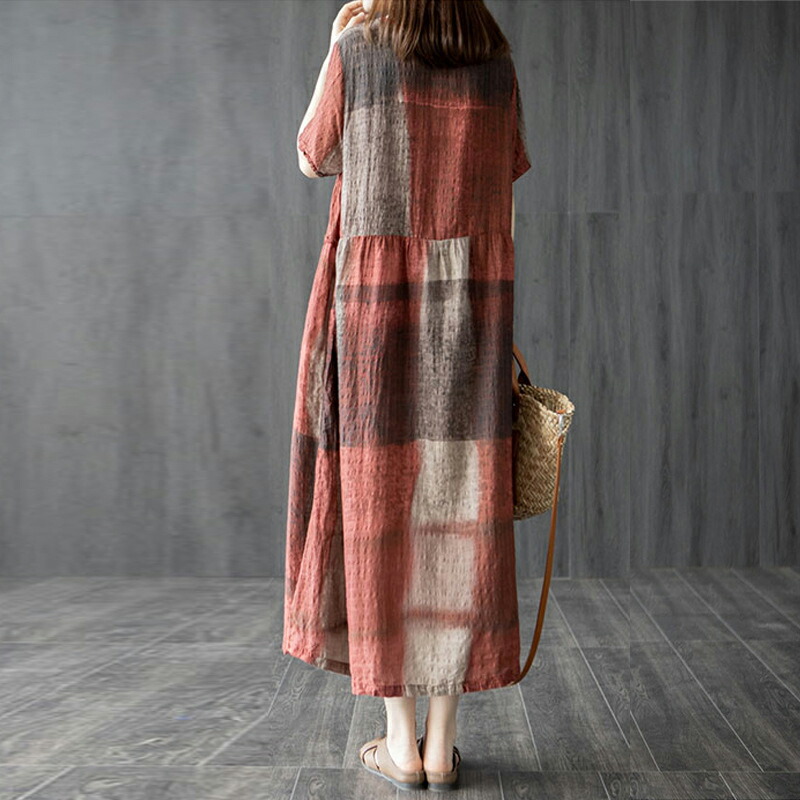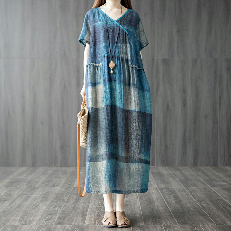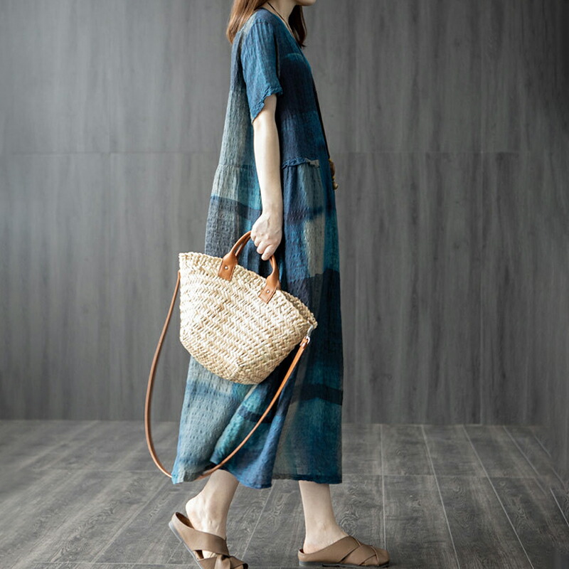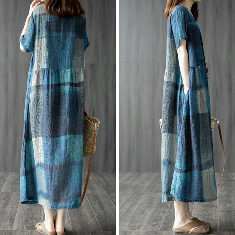 ワンピース 綿麻 レディース 秋 夏 ワンピース 新登場! ブルー レッド M L XL(LL) 2XL(3L)