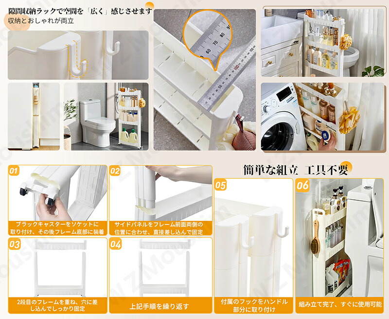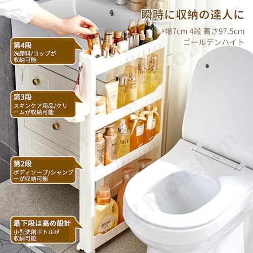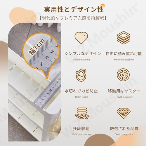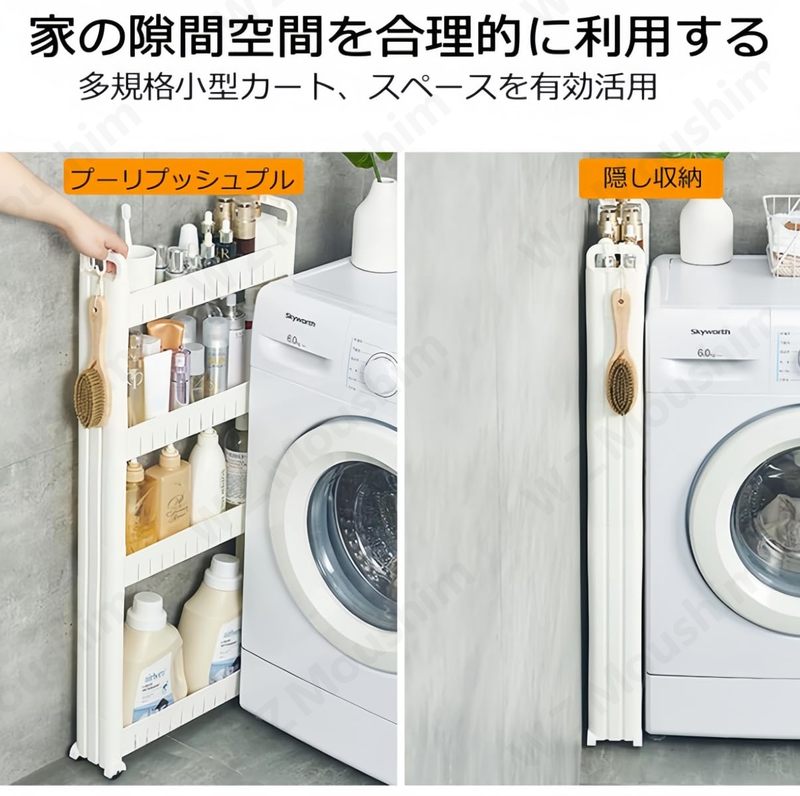 【7cm超薄型設計で空間を有効活用】冷蔵庫横、洗濯機横、洗面台下などのデッドスペースに最適。幅わずか7cmの超薄型設計で、狭いキッチンや浴室もすっきり収納。浴室、寝室、リビング、子供部屋、キッチン、書店、美容室など様々な場所で大活躍。抜群の収納力を実現します。