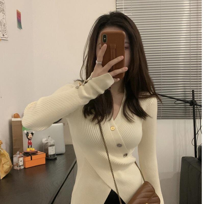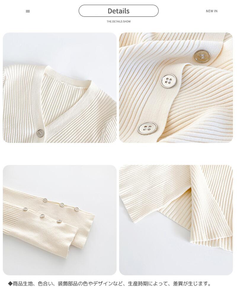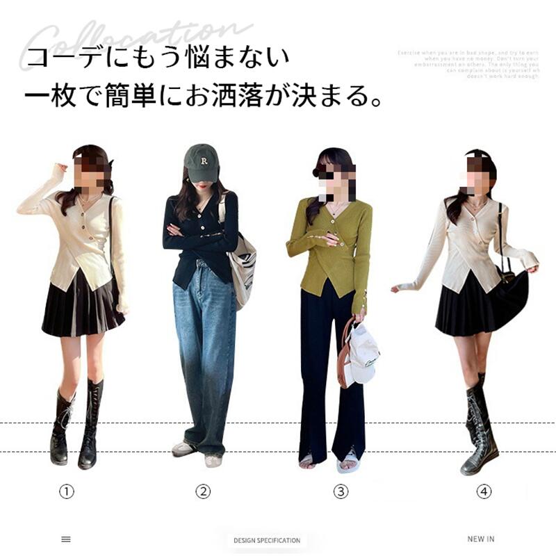 シンプルな無地ニットながら、カシュクールデザインとボタンデザインで、可愛い雰囲気を作れます。