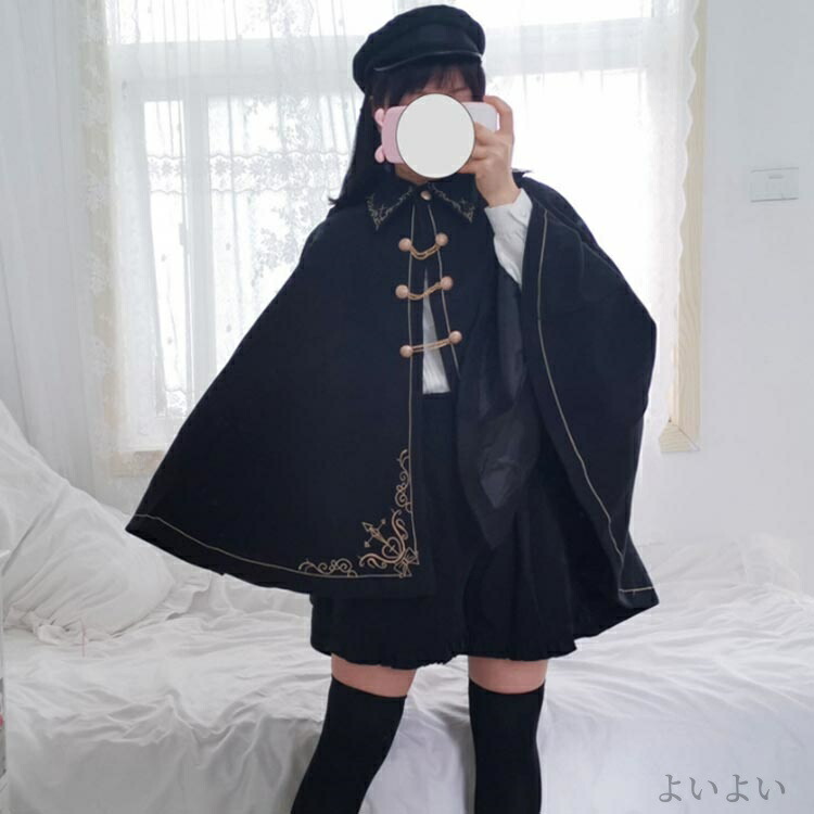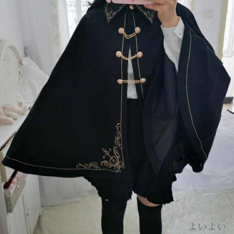 格好いい ケープ 刺繍ラシャコート ゴ レディースファッション 豊富 ブラック 中綿ブラック S M L