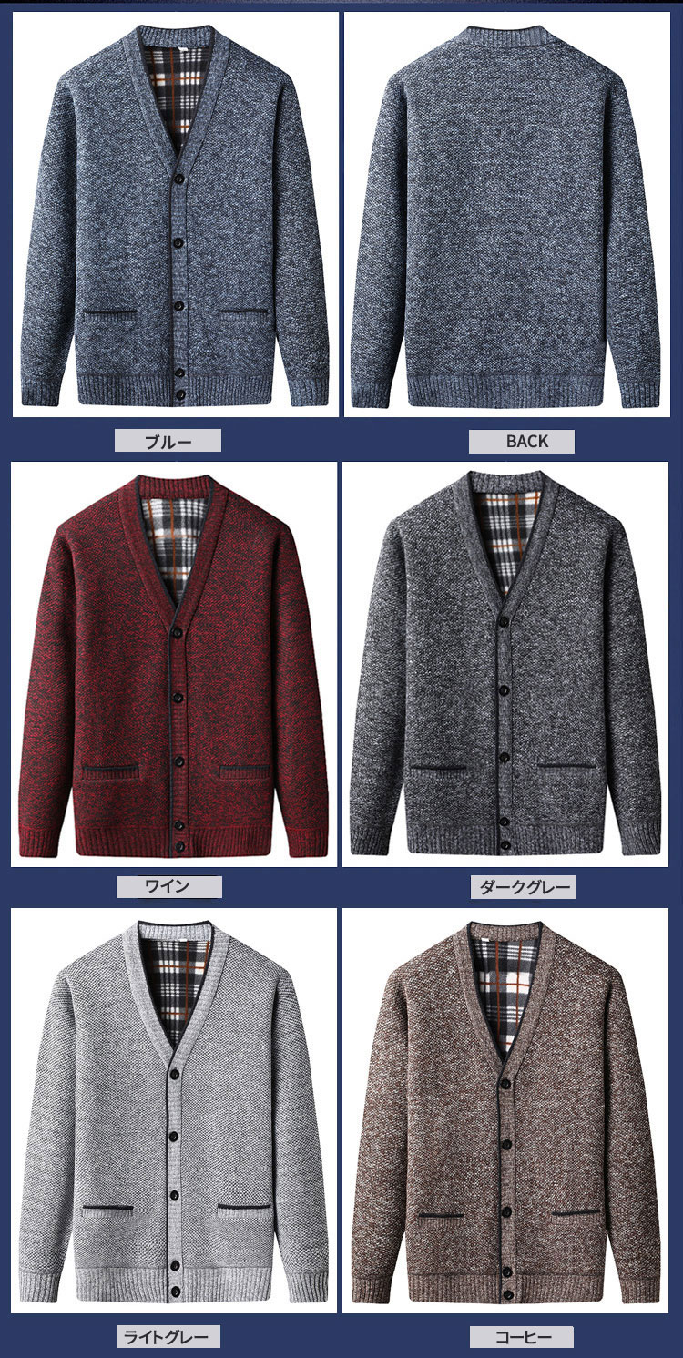 カーディガン メンズ裏起毛 秋冬 ニッ トップス カーディガン 新作 ブルー ワイン ダークグレー ライトグレー コーヒー M L XL XXL XXXL