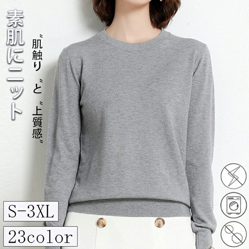 トップス ニット クルーネックニット トップス ニット セーター セーター 豊富 ベージュ ホワイト キャメル イエロー ピンク ライトピンク ライトパープル パープル ライトイエロー ミントグリーン ブルー ダークブルー ライトレッド ローズレッド オレンジレッド レッド ダークレッド ネイビー グレー ダークグリーン ダークパープル ダークグレー ブラック S M L XL 2XL 3XL