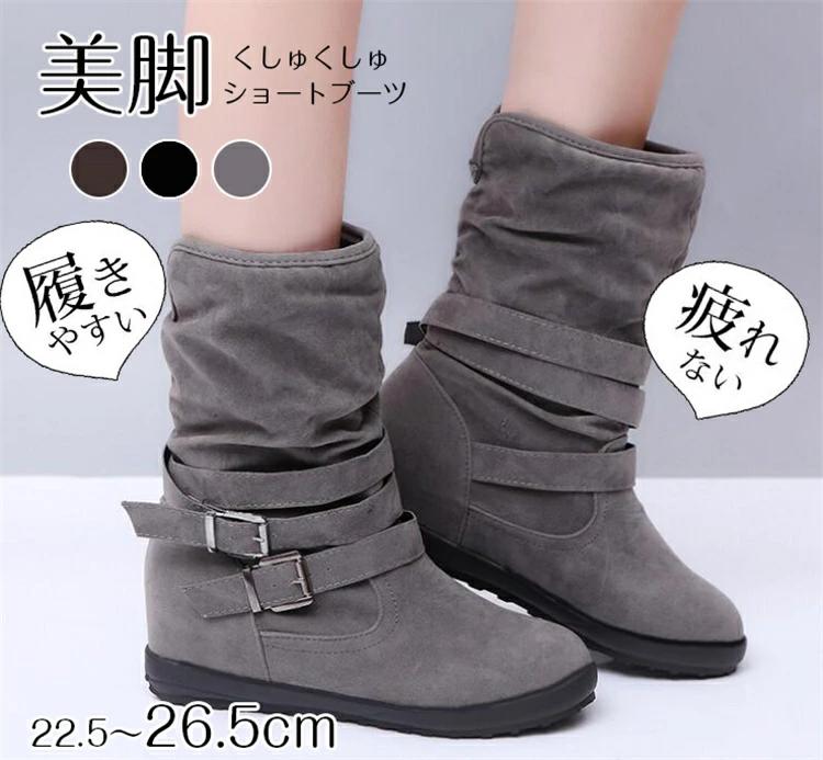 甲高 幅広 レディース くしゅくしゅ 太い 歩きやすい 疲れない 筒周り ブーツ ベルト ローヒールイ ショートブーツ