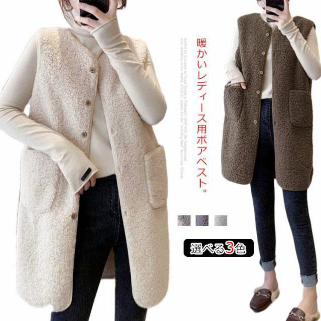 ボアベスト レディース ジレ ボア ベスト ロングベスト 秋 冬 春