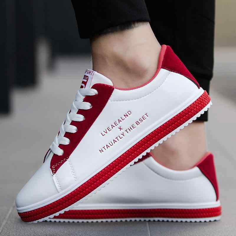 軽量 紐 フラット 白 英字 メンズ 赤 レースアップ 厚底 黒 スニーカー 柔らかい 靴 男性用 無地 秋冬 ロゴ PUレザー