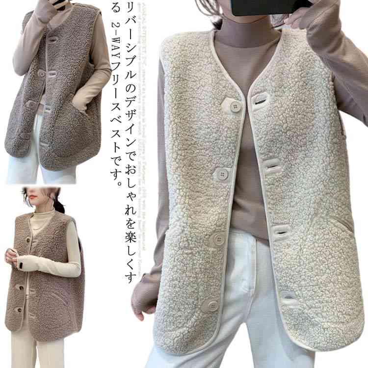 ボアベスト レディース フリースベスト ロング丈 ボアジャケット トップス ノースリーブ ボア アウター ボアコート 大きいサイズ ふわふわ もこもこ 無地 暖かい 羽織り 20代 30代 40 秋冬