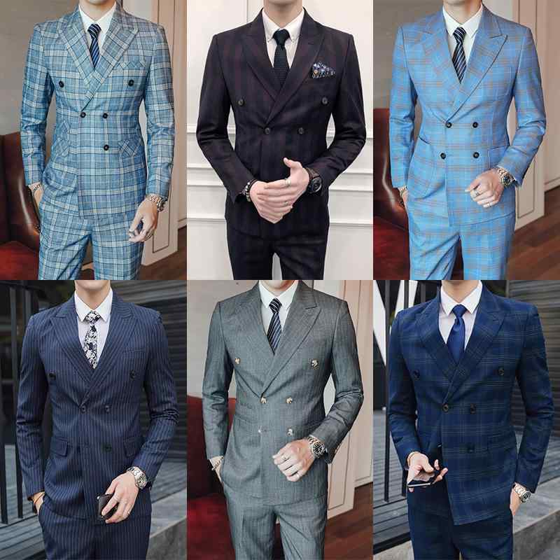 スーツ メンズ ダブルブレスト スリーピース セットアップ ビジネス フォーマル カジュアル スリムフィット ブリティッシュスタイル 韓国風 ピークドラペル ビスコース アセテート グ オールシーズン