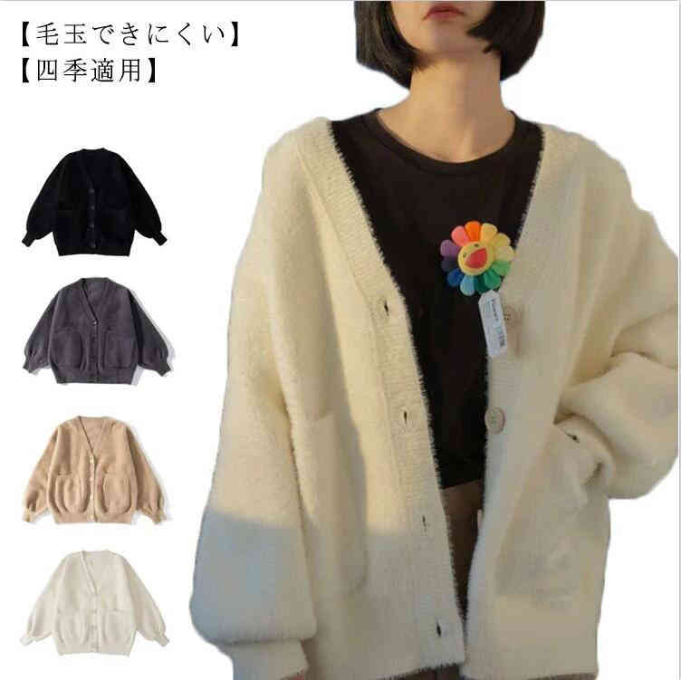 レディース カーディガン スウェット生地 スウェットカーディガン トップス Vネック 秋冬 アウター かわいい カーデ 羽織り ポケット付き パーカー ゆったり 体型カバー ボリューム袖