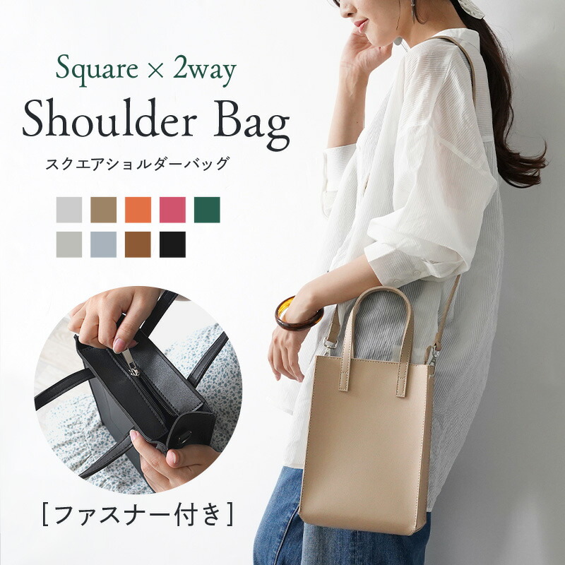ショルダーバッグ レディース スクエアバッグ 斜めがけ 大人 小さめ 2way ショルダー ミニショルダーバッグ ミニバッグ スクエア バッグ ポシェット 合皮 フェイクレザー シンプル ブラッ ミニ